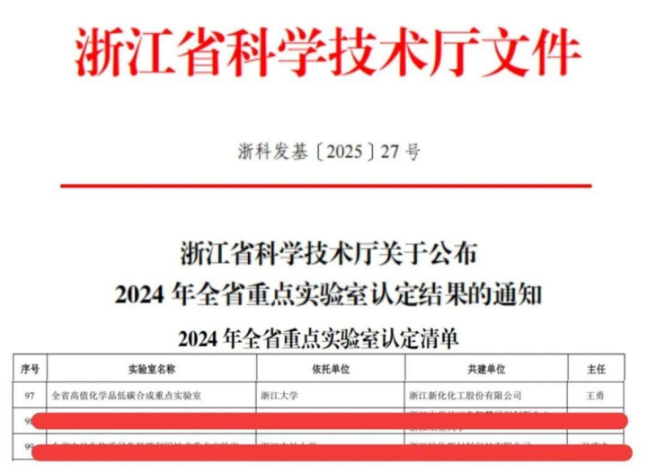 近日,新化股份企业研究院传来喜讯:新化股份与浙江大学联合共建的“全省高值化学品低碳合成重点实验室”成功入选全省重点实验室名单。这一入选标志着双方在绿色化学与低碳技术领域的合作迈入新阶段,将为浙江省乃至全国的高值化学品可持续发展提供强有力的科技支撑。